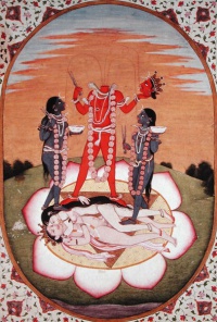 [[Datei:Chinnamasta1800.jpg|200px|thumb|right| Chinnamasta auf Kama]]