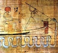 Andererseits war er auch Schutzgott der Oasen und Gefährte des Horus. Die Riesenschlange Apophis tritt ihm nach dem Mythos bei Sonnenuntergang auf der Sonnenbarke vor der Einfahrt in die Unterwelt bedrohlich entgegen. Seth bekämpft sie vom Bug des Schiffes aus mit einem Speer.