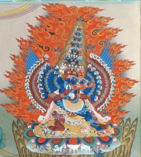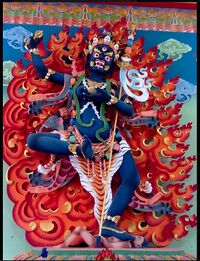 Im Bardo erscheint er am neunten Tag mit einer Gefährtin Vajra Krodhishvari.