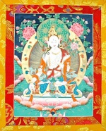 Je nach ihrem Aspekt tragen die Taras als friedvolle Manifestationen Bodhisattva - Schmuck oder als kraftvoll-schützende (zornig-furchtbare) Erscheinungen Dharmapala-Ausstattungen.