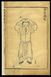 200 KB | Adm1 (Diskussion | Beiträge) | https://commons.wikimedia.org/wiki/File:Qigong_exercise_to_treat_various_illnesses_of_the_abdomen_Wellcome_L0038885.jpg Qigong exercise to treat various illnesses of the abdomen Description Xiuzhen miyao, a gymnastic (daoyin/qigong) text of unknown origin, was rediscovered and published with a preface by Wang Zai in 1513 (8th year of the Zhengde reign period of the Ming dynasty). It records 49 exercises. This illustration depictsBawang ju ding(the Conquering Overlord raises the ceremonial… | 1 |