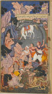 467 KB | Adm1 (Diskussion | Beiträge) | https://commons.wikimedia.org/wiki/File:Ravana_seizes_the_chariot_Puspaka_from_Kuvera.jpg Qasim, Indian, Mughal dynasty English: Folio from the Ramayana of Valmiki (The Freer Ramayana), Vol. 2, folio 297; recto: text; verso: Ravana seizes the chariot Puspaka from Kuvera Date between 1597 and 1605 Medium Opaque watercolor, ink, and gold on paper Dimensions height: 27.5 cm (10.8 in); width: 15.2 cm (5.9 in) Collection Freer Gallery Credit line Gift of Charles Lang Freer F1907.271.297… | 1 |