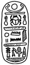 • Shen - Eine kreisförmige Schnur ohne Anfang und Ende als Symbol der Ewigkeit. Sie wird oft mit der Sonnenscheibe als Zentrum dargestellt und war auch ein Schutzsymbol. Sie ist oft über dem Kopf des Pharaos und von Gottheiten schwebend zu sehen, auch mit ausgebreiteten Flügeln als Schutzesgeste.(Schen-Ring)