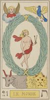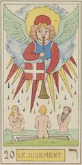 Aus esoterischer Sicht stellt die Johannesoffenbarung den universellen Stufenweg in 22 visionären Kapiteln bzw. in 7 Abschnitten mit 7 Phasen dar[3]. Daher sind hier die entsprechenden Tarotkarten abgebildet.