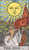 (Die erste Phase mit 'Erde und Wasser' betrifft die Läuterung der niederen Natur des Menschen, die in der Alchemie mit grauer Wolf bezeichnet wird. Daher zeigt die Tarotkarte auch die leicht erweckte Kundalini.--- Die bisherige Transformation ist aber nicht ausreichend.)