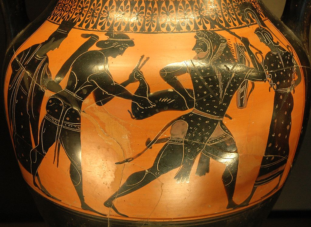 Herakles capturing the Ceryneian Hind, detail of an Attic black-figure amphora, ca. 530 BC–520 BC.