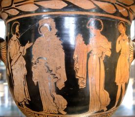 Dolon Painter Description English: Presents from Medea to Creusa. Side A from a Lucanian red-figure bell-krater, ca. 390 BC. From Apulia.