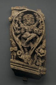 Gajasurasamhara wird auch in Begleitung von Parvati, Ganesha und begleitenden Ganas wie Nandi und Bhringi und daneben verschiedenen Gottheiten und himmlischen Musikern und skelettartigen Koboldbegleitern dargestellt[Rao].