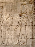 Heka-pa-chered auf Relief am Esna - Tempel, rechts Chnum