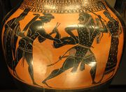 Die Kerynitische Hirschkuh wird von Herakles als eine seiner Prüfungen eingefangen.