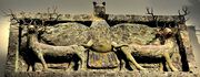 Imdugud (Anzu) auf einem Paar Hirschen stehend