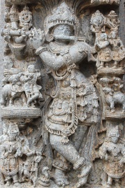 Das Schwert in der Hand von Krishna war der Gott der Zerstörung, d.h. Maheswara selbst. Der Weise Kashyapa wurde als der Mörtel in Yasodhas Haus geboren und die Gottesmutter Adithi wurde das Seil, das Krishna an den Mörtel band.