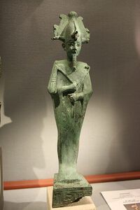 Osiris wurde besonders durch den Osirismythos bekannt. Er wird entweder als Sohn von Geb oder von Nut angesehen. Seine Gattin war Isis, die Mutter von Horus. Er war der Richter und Herr der Toten und der Unterwelt, der 'Herr der Stille' und Khenti-Amentiu('Erster der Westler') bedeutet[1][2]. In der Unterwelt herrschte schließlich eine Kombi-Gottheit Ptah-Seker-Osiris.