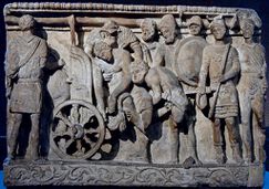 Patroclus ist nach Gaius Julius Hyginus ein Sohn des Menoitios und der Sthenele oder Periapis oder Polymele). Homer bezeichnet Menoetius in der Ilias 23.54 als die Person, die Peleus Patroklos gab. Patroklos war der Freund und Waffengefährte des Achilleus. In der Ilias wird die Beziehung zwischen Achilles und Patroklos als eine enge Freundschaft beschrieben, die noch über den Tod hinausreichen sollte. Nach der Beweinung des toten Patroklos erscheint dieser dort dem Freund im Traum und bittet ihn um die Bestattung. Dabei soll Achilleus, weil auch er vor Troja den Tod finden wird, dafür sorgen, dass ihrer beider Gebeine in derselben goldenen Urne bestattet werden.