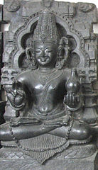Sie gab einem Asura Zuflucht und Indra wandte sich daher an Vishnu. Als Vishnu versuchte, sie versöhnlich zu stimmen, begann sie mit ihrer langen Beschwörung und Vishnu hatte nur die Wahl, sie zu besiegen. Er beschloss, sie zu töten während sie ihre Beschwörungsformeln von sich gab, und warf den Diskus nach ihr und sie wurde geköpft.