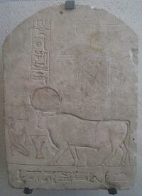 Ab dem Neuen Reich wurde der Kultstier mit der Sonnenscheibe zwischen den Hörnern dargestellt.