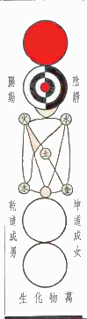 Im Kapitel 42 des Dào-Dé-Jīng von Lǎo Zǐ(Laotse) heißt es : „Dào erzeugt Eins, Eins erzeugt Zwei, Zwei erzeugt Drei, Drei erzeugt alle Dinge". (Anm. : Erst ein Punkt, dann eine Linie, dann ein Dreieck der Form...)