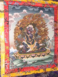 Auf Thangkas wird er meist in stehender, zornvoller Haltung abgebildet, jedoch mit einem Aspekt der Weisheit, die durch das dritte Auge und die ihn umgebenden Weisheits-Flammen dargestellt werden.