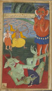 [[Datei:Rama and Laksmana Confront the Demons Marica and Subahu.jpg| | [[Datei:Rama and Laksmana Confront the Demons Marica and Subahu.jpg|180px|thumb|right|[[Rama]] und Laksmana konfrontieren die Dämonen Marica und Subahu ; Vol. 1 ]] | ||