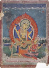 Bagalamukhi(die Kranich-köpfige) ist eine zu den Mahavidyas gezählte tantrische Göttin. Baglamukhi wird verehrt zwecks Macht, Sieg, Schutz gegen Schnitte, bei Operationen, bei Unfällen und Beherrschung der Feinde sowie bei Gerichtsverfahren. Ihre Verehrung soll bei üblen Personen, Geistern und Yakshanis helfen.
