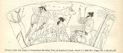 Zeus gelang es aber mit Io in Gestalt eines Stieres zu kopulieren und so den Epaphos zu zeugen, der nach Aischylos (Der gefesselte Prometheus) eine schwarze Hautfarbe hat. Er schickte Hermes, den Argos zu töten und Io zu retten und zu entführen.