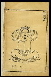200 KB | Adm1 (Diskussion | Beiträge) | https://commons.wikimedia.org/wiki/File:Qigong_exercise_to_treat_various_illnesses_of_the_abdomen_Wellcome_L0038885.jpg Qigong exercise to treat various illnesses of the abdomen Description Xiuzhen miyao, a gymnastic (daoyin/qigong) text of unknown origin, was rediscovered and published with a preface by Wang Zai in 1513 (8th year of the Zhengde reign period of the Ming dynasty). It records 49 exercises. This illustration depictsBawang ju ding(the Conquering Overlord raises the ceremonial… | 1 |