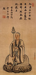 Jizō wird auch mit der Erde(prithivi)[2] assoziiert und mit dem Gott des Todes (Skt. = Yama, Chn. = Yanmo Wang 閻魔王, Jp. = Emma-ō).