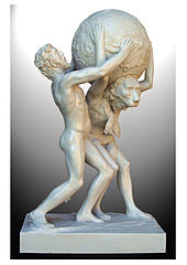 Atlas galt als Titan der Ausdauer und der Astronomie und wurde von Zeus als Strafe dafür, dass er zusammen mit Menoitios die Titanen in den Kampf mit den Göttern des Olymps geführt hatte(Titanomachie), dazu verurteilt, den Himmel für die Ewigkeit nach dem Sturz der Titanen zu halten. Er stützt am westlichsten Punkt das Himmelsgewölbe.