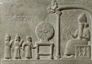 - Šamaš (Schamasch) – der Sonnengott. Er entsprach dem sumerischen Gott Utu und gilt als Gott der Gerechtigkeit und Wahrheit(personifiziert durch Mescharu und Kettu). Schamasch bestieg jeden Tag vom Berg Maschu aus den Himmel. Durch seine überall hindringenden Lichtstrahlen sah er jedes Geheimnis und jede Missetat. Abends trat er wieder in die Erde ein und durchquerte sie bis zum nächsten Morgen. Seine Symbole waren die Sonnenscheibe mit zumeist achtstrahligem Stern und wellenförmigen Strahlen(in Assyrien eine gefügelte Sonnenscheibe), die Sonnenstrahlen an seinen Schultern, der Löwe und die Säge. Seine heilige Zahl war die Zwanzig. Im Gilgamesch-Epos steht er dem Helden Gilgamesh bei seinem Kampf gegen den Dämonen Ḫumbaba bei, gegen den er dreizehn Sturmwinde entfacht. Seine erste Gemahlin ist Aja (auch Aia, Anunitu).
