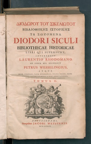 Latina: Bibliotheca historica. [Diodori Siculi Bibliothecae historicae libri qui supersunt, interprete Laurentio Rhodomano.] Ἀρχαία ἑλληνικὴ: Diodorou tou Sikeliotou Bibliothekes istorikes ta sozomena Datum 1746 Quelle Paolo Monti - Serie fotografica (Italia, 1954) - BEIC 6340859.jpg Verfügbar in der digitalen Bibliothek BEIC und hochgeladen in Partnerschaft.