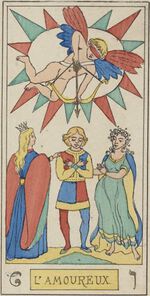 - Eros (altgriechisch Ἔρως Érōs /ěrɔːs/) ist andererseits in der griechischen Mythologie der Name des Gottes der begehrlichen Liebe. In der römischen Mythologie erscheint er als Amor, der als Personifikation der erotischen Begierde auch Cupido (Begierde“, Leidenschaft) genannt wird. Eros ist seit der Antike eine der beliebtesten mythischen Figuren in Literatur, bildender Kunst und Musik. Die Tarotkarte 6 zeigt ihn - vergleichbar mit Kama - schon über dem Adepten. Zumeist wird er diesbezüglich aber neben dem Menschen dargestellt.